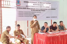 MANADO,  MANADOLIVE.CO.ID– Sekretaris Daerah Kota Manado Micler Lakat bersama dengan Badan Pembentukan Peraturan Daerah (Bapemperda) DPRD Manado melakukan sosialisasi Rancangan Peraturan Daerah (Ranperda) di beberapa kecamatan yang ada di kota Manado.