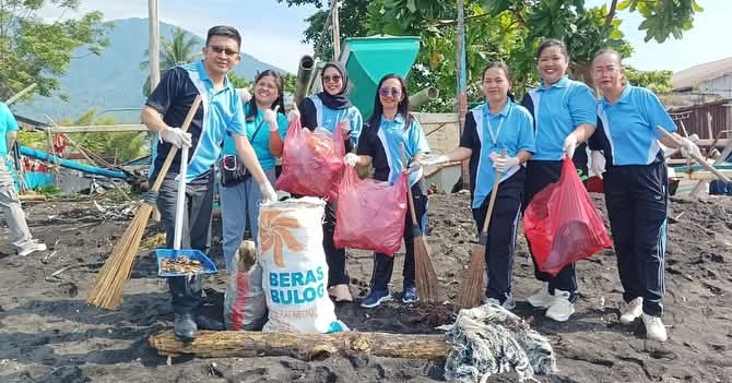 Terpantau dari semenanjung pantai Kelurahan Tanjung Merah hingga pantai Kelurahan Kasawari seluruh pegawai lingkungan Pemerintah Kota Bitung giat mengangkat sampah.