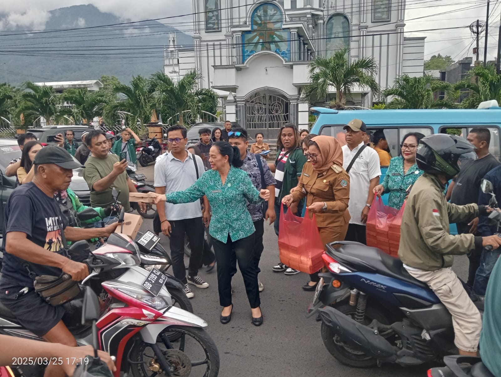 Tim Penggerak PKK Kecamatan Maesa hari Selasa 25 Maret 2025 menggelar kegiatan bagi bagi takjil gratis di jalan sekitar menara Eiffel pusat kota Bitung.