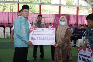 BOLSEL, MANADOLIVE.CO.ID- Secara simbolis , Bupati Bolsel Iskandar Kamaru memberikan bantuan studi kepada salah satu peserta penerima bantuan beasiswa kedokteran, bertempat di lapangan futsal komplek perkantoran Panango, Jumat, (16/12/2022).