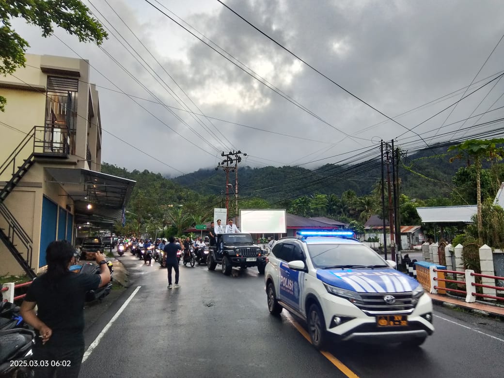 Setelah prosesi penyambutan di pelabuhan, Bupati dan Wakil Bupati diarak mengelilingi Kota Tahuna. Sepanjang perjalanan, masyarakat tampak antusias melambaikan tangan sebagai bentuk dukungan.