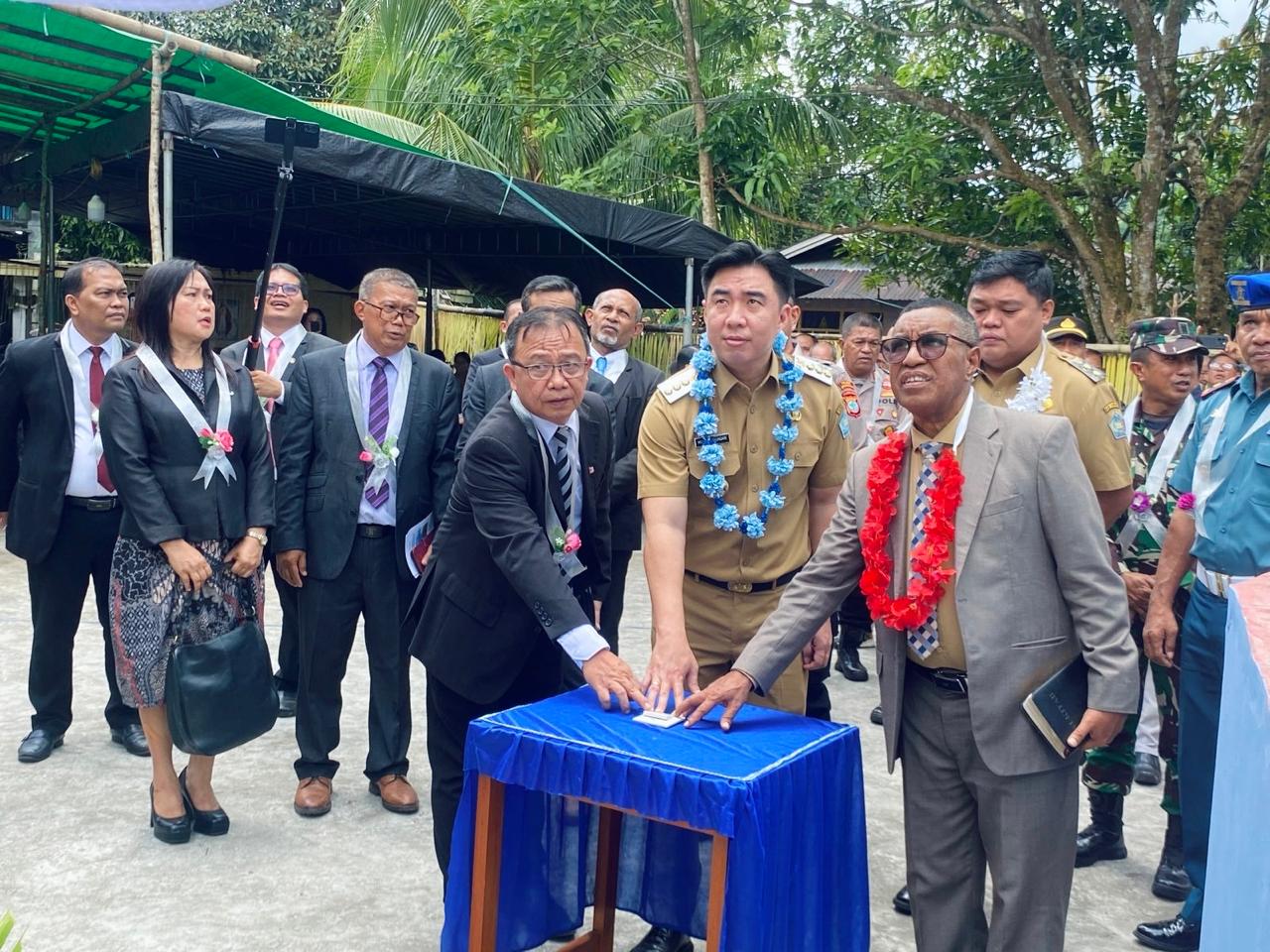 Bupati Kepulauan Sangihe, Michael Thungari, S.E., M.M., bersama Wakil Bupati Tendris Bulahari, juga hadir langsung dalam peresmian sebagai bentuk dukungan pemerintah daerah terhadap perkembangan kehidupan rohani masyarakat.