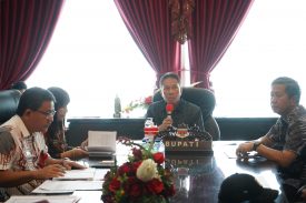 Bupati Minahasa Selatan didampingi oleh Sekretaris Daerah, Asisten Perekonomian dan Pembangunan, para Kepala Perangkat Daerah dan Kepala Bagian Setda terkait. (Kominfo)