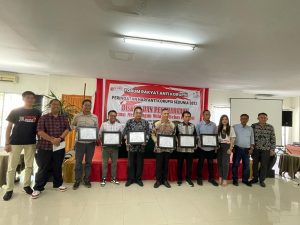 Manado, MANADOLIVE.CO.ID- Momentum peringatan Hari Anti Korupsi sedunia, Forum Rakyat Anti Korupsi yang terdiri dari beberapa Lembaga Swadaya masyarakat Anti Korupsi di Sulawesi Utara memberikan penghargaan kepada Penjabat Bupati Minahasa Dr. Jemmy Stani Kumendong, M.Si melalui Asisten Perekonomian dan Pembangunan Ir. Wenny Talumewo, M.Si berupa Piagam Penghargaan Pemberantasan Pungutan Liar di Kabupaten Minahasa. Piagam penghargaan diserahkan di Griya Sintesa Hotel Manado, Sabtu (09/12).