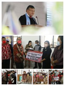 Dalam kesempatan tersebut, Bupati ROR juga menyerahkan bantuan dana hibah kepada sejumlah Gereja, dana bantuan bencana dan bantuan sosial berupa sembako kepada sejumlah pegawai kebersihan dan penjaga kantor di lingkup Pemkab Minahasa.