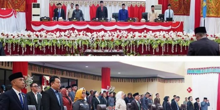 Rapat yang berlangsung di Aula Kantor DPRD Bolmong ini dipimpin Ketua DPRD Tony Tumbelaka, didampingi Wakil Ketua I Febrianto Tangahu dan Wakil Ketua II Sulhan Manggabarani. Hadir pula Bupati Yusra Alhabsyi, Wakil Bupati Dony Lumenta, para anggota DPRD, Sekretaris Daerah, asisten, pimpinan OPD, camat, serta ASN lingkup Pemkab Bolmong.