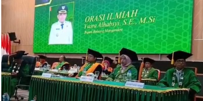 BOLMONG – Bupati Bupati Bolaang Mongondow Yusra Alhansy mendapat kehormatan dari Kampus Institut Agama Islam Negeri (IAIN) Manado untuk memberikan Orasi Ilmiah dalam Sidang Senat Terbuka di hadapan para wisudawan Program Sarjana dan Pasca Sarjana Ke-XIV di gedung Outorium IAIN Manado, kecamatan Wori Sabtu 18 Oktober 2025.