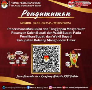 MANADOLIVE.CO.ID, BOLTIM – Komisi Pemilihan Umum (KPU) Bolaang Mongondow Timur (Boltim) siap menerima saran dan masukan masyarakat terkait Bakal Calon (Balon) Bupati