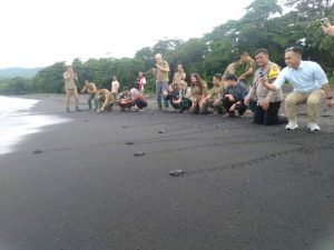 Bhabinkamtibmas Batu Putih Bawah Turut Melepas Puluhan Bibit Penyu