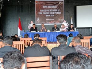 Bitung,MANADOLIVE.CO.ID- Bertempat di Yulita Hills Kadoodan hari Rabu 10 Juli 2024, Ketua KPU Bitung Desli Sumampouw, SE membuka Rakor Mitigasi Potensi Masalah