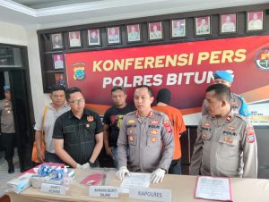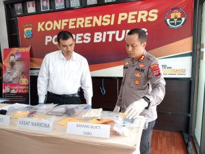 Bitung,MANADOLIVE.CO.ID- Satuan Resnarkoba Polres Bitung hari Kamis 28 Maret 2024 menggelar Konferensi Pers terkait pengungkapan kasus narkoba jenis sabu. Kapolres Bitung AKBP