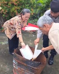 Bitung,MANADOLIVE.CO.ID- Bertempat di halaman gedung Kesenian Girian hari Kamis 4 April 2024, Dinas Pendidikan dan Kebudayaan kota Bitung menggelar kegiatan pemusnahan blanko