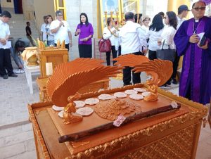 Bitung,MANADOLIVE.CO.ID- Setelah ditahirkan melalui ibadah khusus replika perkakas Bait Suci Dorbolaang Kecamatan Lembeh Selatan hari Sabtu 24 Februari 2024. Akhirnya pelayanan doa