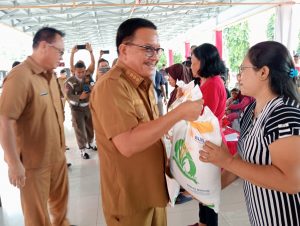 Bitung,MANADOLIVE.CO.ID- Bertempat di Tribun lapangan kantor walikota Bitung hari Senin 29 Januari 2024, di adakan kegiatan pembagian bantuan cadangan beras pemerintah (CBP)