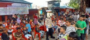 Badut Polantas Bitung Bikin Anak Pasar Tua Terpukau