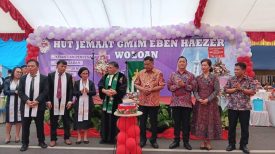Ibadah dipimpin oleh Pdt Dr Hein Arina selaku Ketua BPMS GMIM tersebut, Gubernur Sulawesi Utara menyatakan atas nama Pemerintah Sulawesi Utara mengucapkan Selamat Hari Ulang Tahun Jemaat GMIM Eben Heazer Woloan.