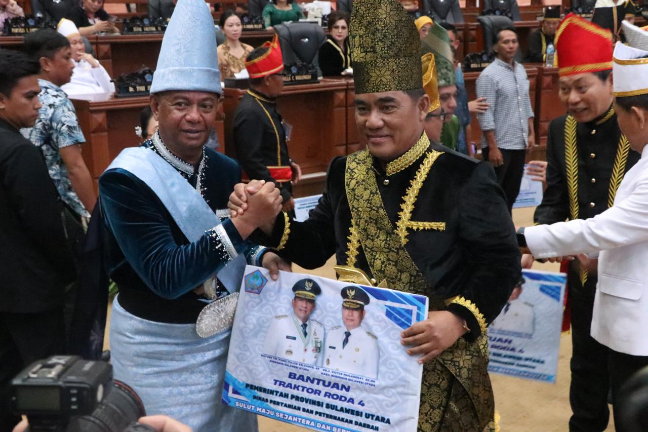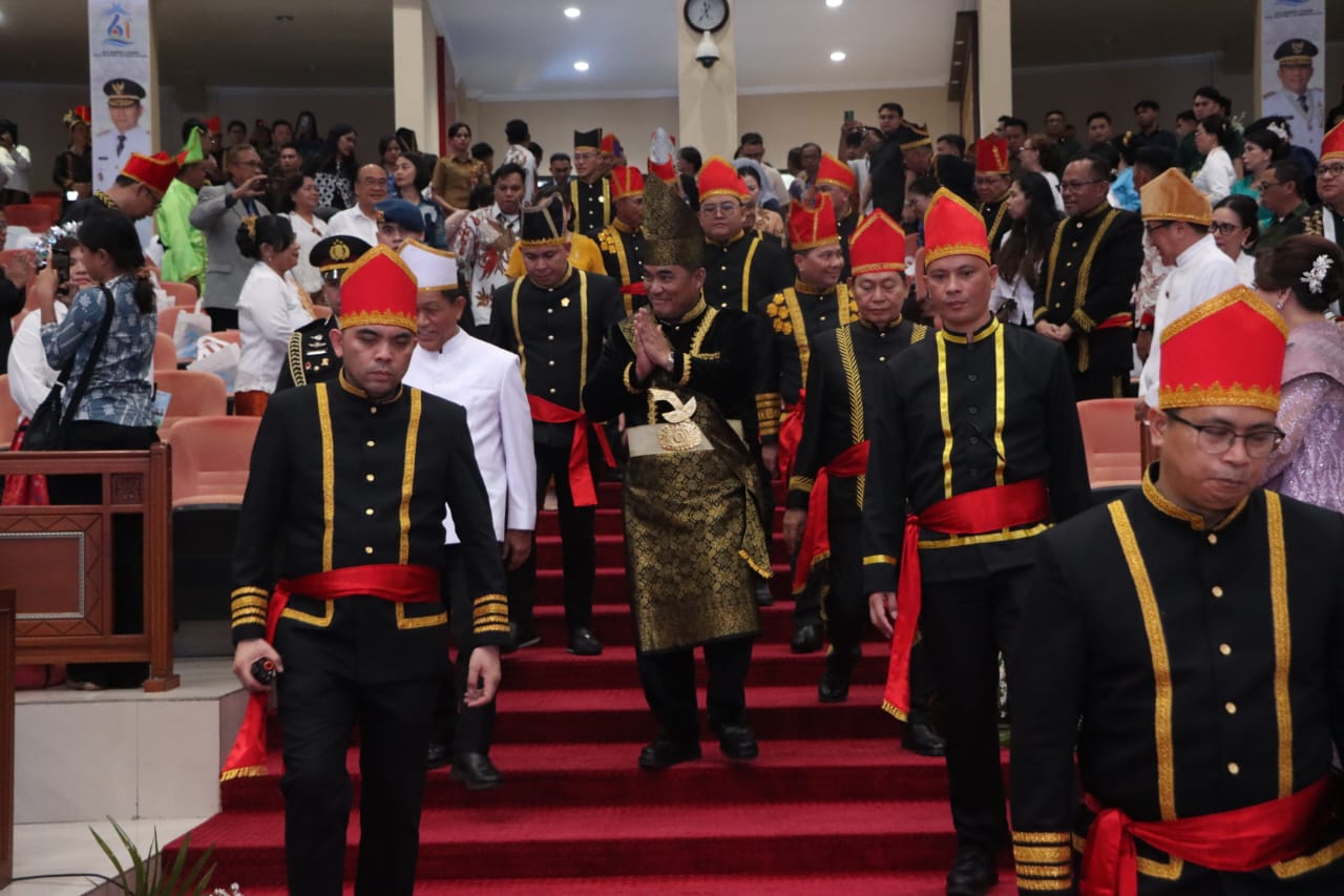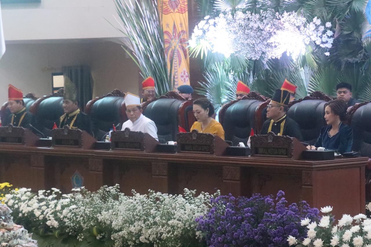 Gubernur Sulawesi Utara Mayjen TNI (purn) Yulius Selvanus Komaling (YSK), Wakil Gubernur Victor Mailangkay serta Forkopimda dan kepala-kepala dari Kabupaten/Kota ikut hadir dalam Paripurna dengan mengunakan pakaian adat.