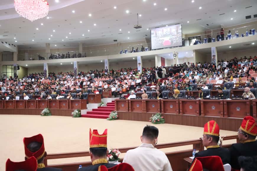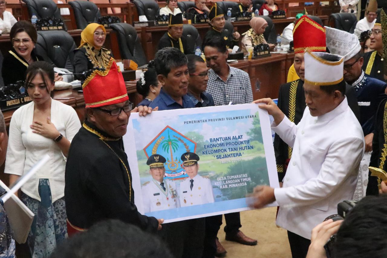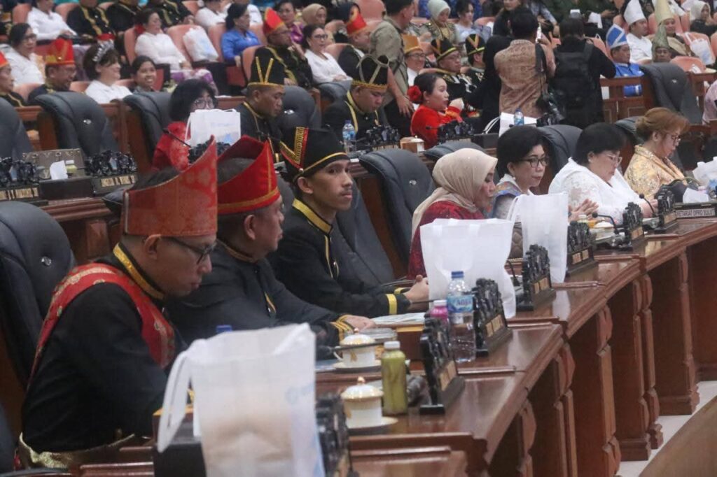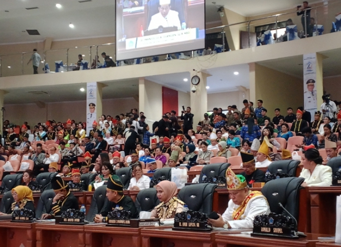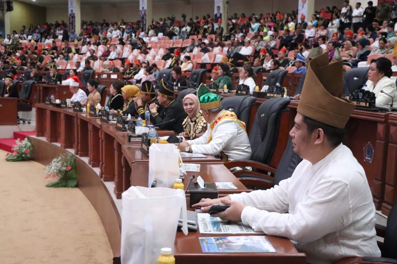 Gubernur Sulawesi Utara Mayjen TNI (purn) Yulius Selvanus Komaling (YSK), Wakil Gubernur Victor Mailangkay serta Forkopimda dan kepala-kepala dari Kabupaten/Kota ikut hadir dalam Paripurna dengan mengunakan pakaian adat.