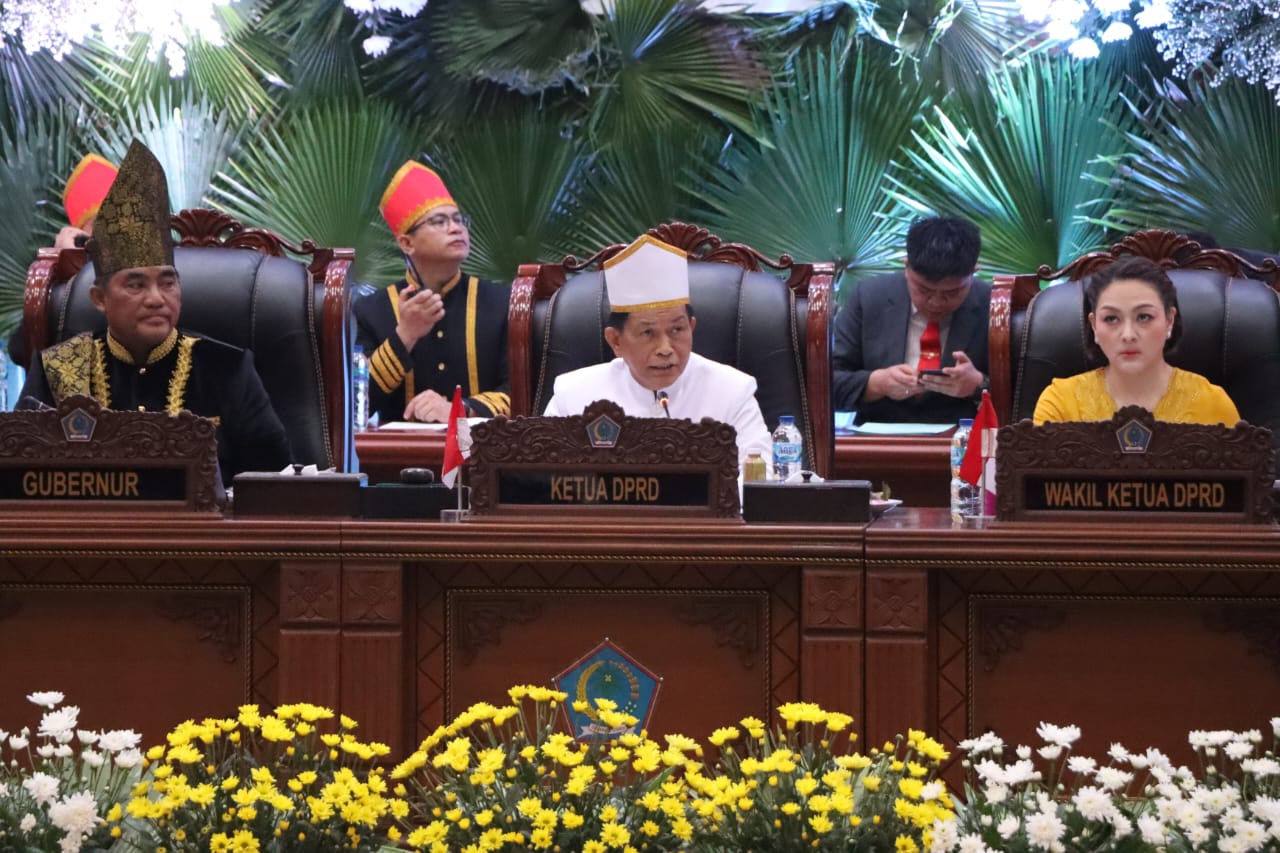 Gubernur Sulut Yulius Selvanus dalam paripurna tersebut menyampaikan capaian pembangunan di Sulut.