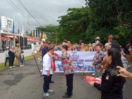 Kirab Pemilu yang sebelumnya dari KPU Minahasa, diserahterimakan ke KPU Mitra yang ditandai dengan penyerahan dan penerimaan bendera Kirab Pemilu, Minggu (26/03).