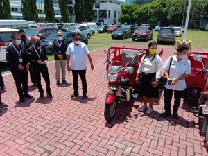 BITUNG,MANADOLIVE.CO.ID- Bertempat di tribun lapangan kantor walikota hari Rabu 2 Maret 2022, Wali Kota Bitung Ir.Maurits Mantiri, MM menerima bantuan hibah 2 unit motor Viar dari Bank Prisma Dana.