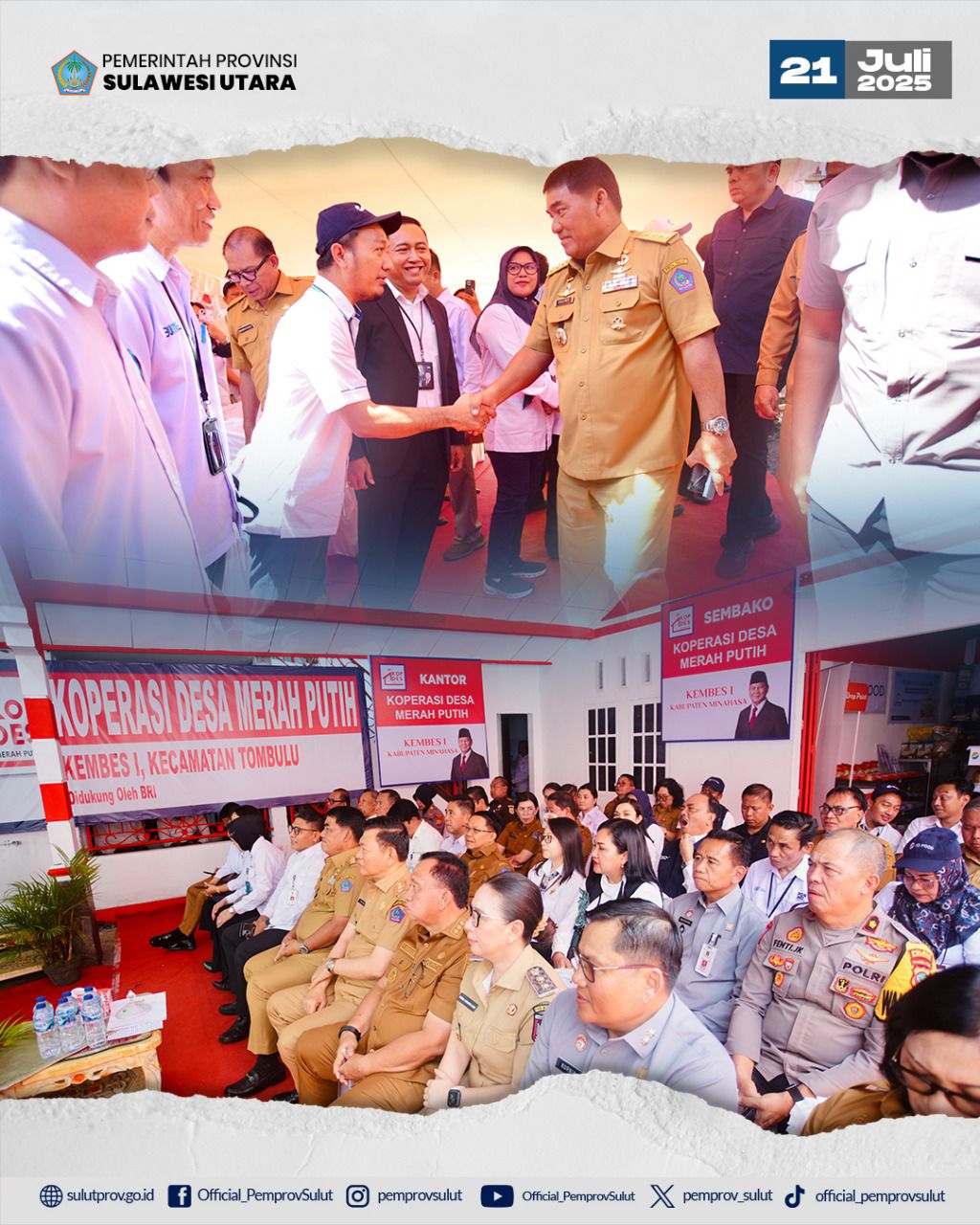 Dalam sambutannya di lokasi, Gubernur Yulius Selvanus menyampaikan bahwa Provinsi Sulawesi Utara menunjukkan komitmen kuat dalam mendukung gerakan nasional ini. Hingga Juli 2025, sebanyak 1.507 desa dan 333 kelurahan di Sulawesi Utara telah membentuk dan secara resmi mengesahkan Koperasi Merah Putih di wilayah masing-masing.