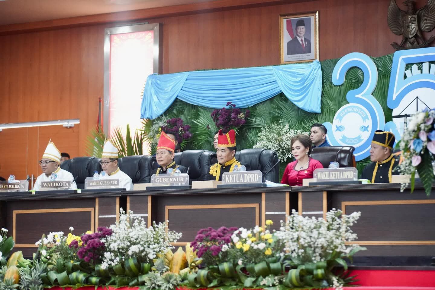 Bitung, MANADOLIVE.CO.ID- Gubernur Sulawesi Utara Mayjen TNI (Purn) Yulius Selvanus S.E, menghadiri Kegiatan Rapat Paripurna DPRD Kota Bitung, dalam rangka Peringatan Hari Ulang Tahun Kota Bitung Ke 35.