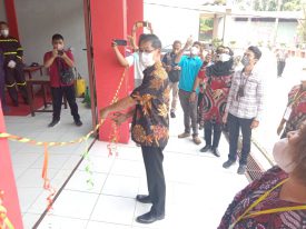 Wakil Wali Kota Hengky Honandar, SE dan ketua DPRD Bitung Aldo Ratungalo meluncurkan Teaching Factory teknik kendaraan ringan otomotif di tandai dengan pengguntingan pita disaksikan kepala SMKN 2 Bitung Meryati Taengetan, SPd bersama para guru dan instruktur.