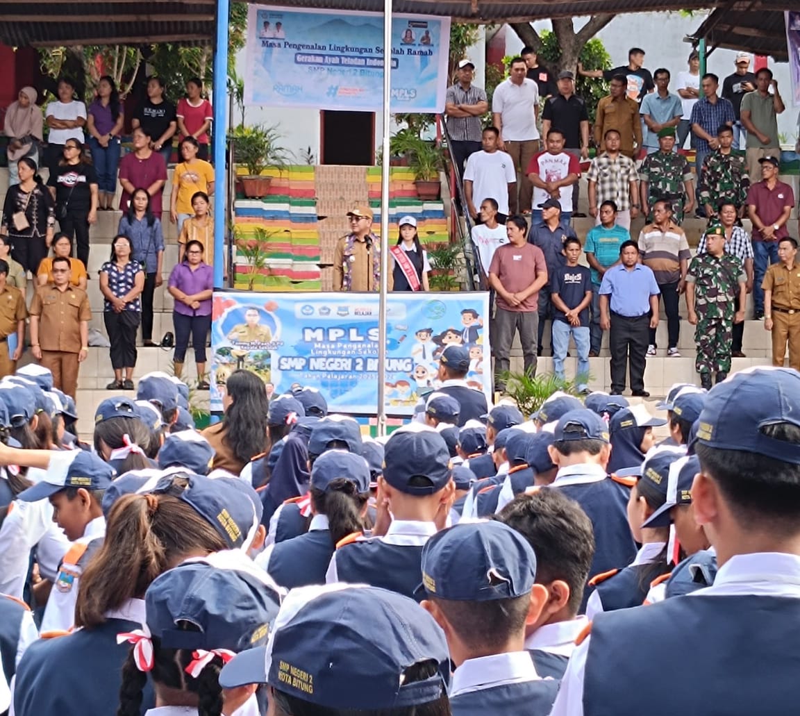 Di tempat terpisah Wakil Wali Kota Bitung Randito Maringka menjadi pembina upacara di SMPN 2 Bitung sekalian melepas kartu tanda peserta Masa Pengenalan Lingkungan Sekolah (MPLS).