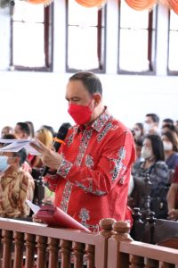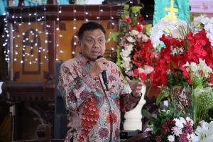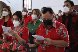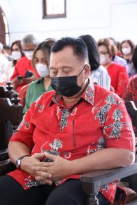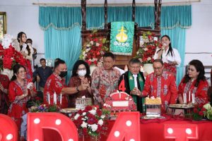 MINAHASA, MANADOLIVE. CO. ID– Gubernur Sulawesi Utara Olly Dondokambey menghadiri ibadah syukuran empat tahun kepemimpinan Bupati dan Wakil Bupati Kabupaten Minahasa, Royke Octavian Roring dan Robby Dondokambey (R3D) di Jemaat GMIM Sentrum Tondano, Minggu (25/09/2022).