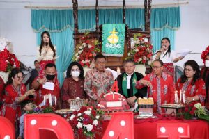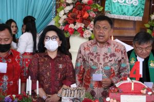 “Saya sangat berterima kasih atas sambutan masyarakat untuk kita bersyukur bersama sama sehingga akan berdampak baik bagi daerah kita, baik ekonomi maupun pariwisata. Jadi mari bersama-sama kita topang program pemerintah, program gereja dan tokoh masyarakat, jika ekonomi kita bertumbuh, lapangan pekerjaan bertambah yang berdampak pengangguran berkurang,”harapnya.