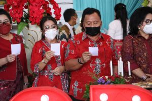 Nampah hadir dalam ibadah, Ketua TP PKK Provinsi Sulut, Rita Tamuntuan, Ketua TP-PKK Kabupaten Minahasa, Fenny Roring Lumanauw, Bersama Wakil Ketua TP-PKK Kabupaten Minahasa Martina Dondokambey – Lengkong.Sekretaris Daerah Kabupaten Minahasa, Frits R. Muntu S.Sos, Forkopimda Minahasa, FKUB Minahasa, Jajaran Pemkab Minahasa serta Jemaat GMIM Sentrum Tondano.