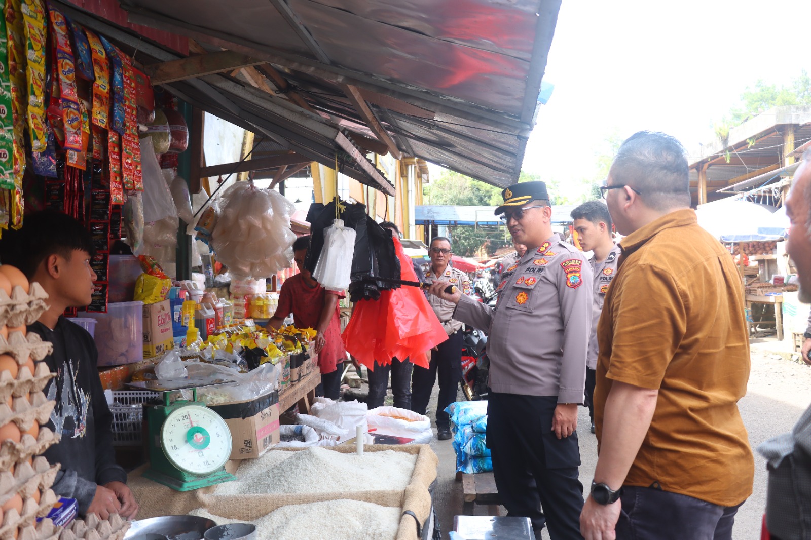 Dalam kunjungan ini Kapolres berbincang dengan para pedagang.