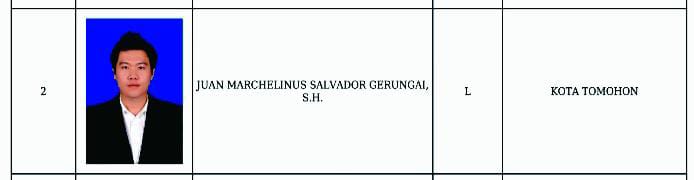 Juan Marchelinus Salvador Gerungai SH dengan nomor urut 2 Daftar Calon Sementara (DCS) Partai Nasdem untuk Daerah Pemilihan Sulawesi Utara 6.