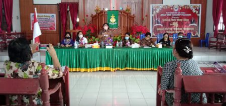 Eugenie Nona Mantiri MPd memulai tugas perdana hari Kamis 14 Oktober 2021 memimpin rapat Kelompok Kerja Kepala Satuan Pendidikan atau K3SP di SD GMIM 5 Dua Sudara.