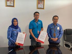 Penandatanganan dilakukan Kadis Lingkungan Hidup Merianti Dumbela dan PLt Dirut PDAM Joubert Kussoy di saksikan Kabag Kerja Sama Rio Karamoy.