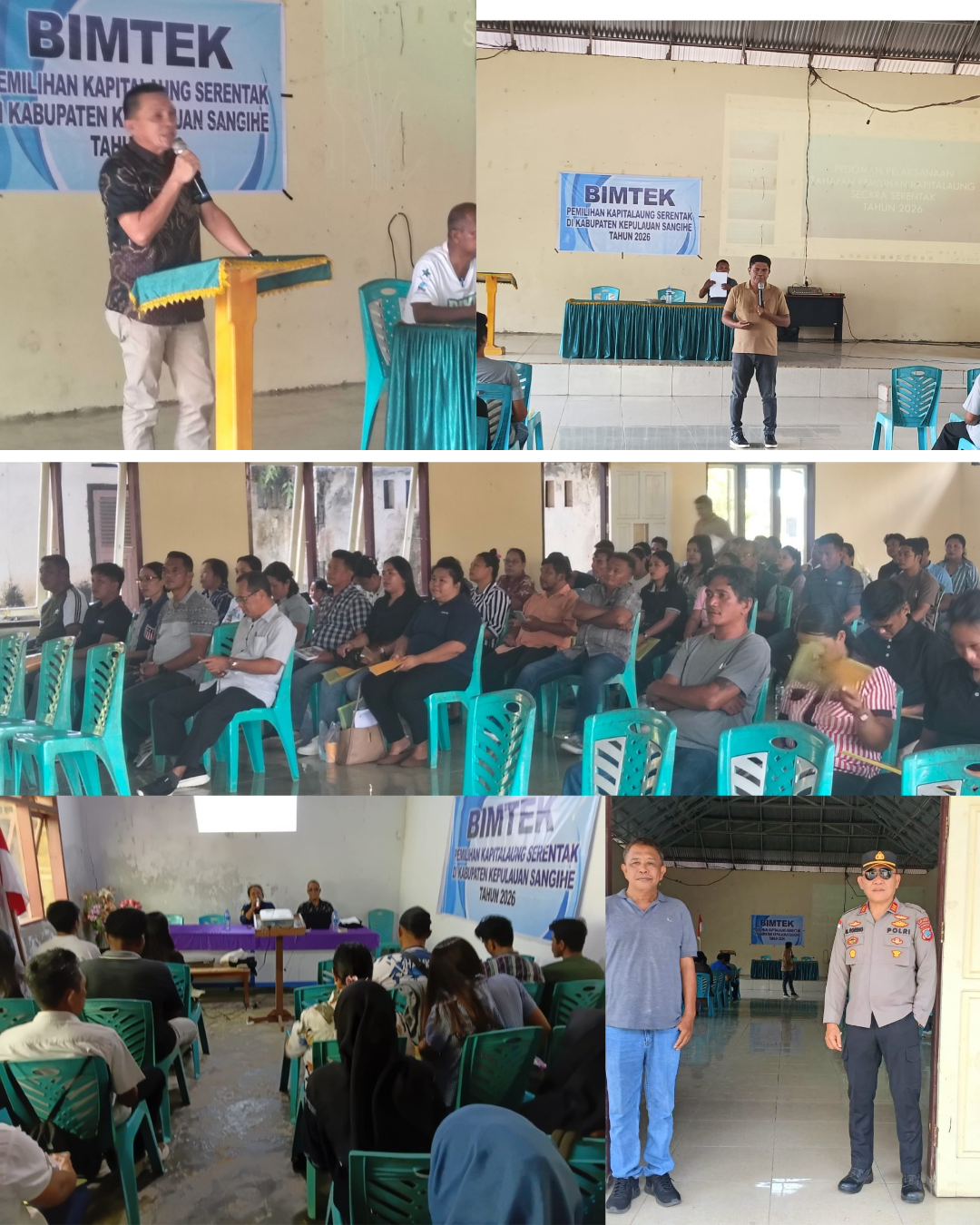 Tahuna, manadolive.co.id – Pemerintah Kabupaten Kepulauan Sangihe melalui Dinas Pemberdayaan Masyarakat dan Desa (PMDD) mulai menggelar tahapan bimbingan teknis (bimtek) pemilihan kapitalaung serentak di tiga kecamatan, yakni Kecamatan Tamako, Manganitu Selatan, dan Kendahe, Jumat (24/04/2026).