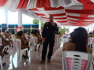 BITUNG, MANADOLIVE. CO. ID- Bertempat di tribun lapangan kantor walikota hari Selasa 30 November 2021, Kepala Kejaksaan Negeri Bitung Frenkie Son SH MH menggelar kegiatan tatap muka dengan Kepala satuan pendidikan SD SMP se kota Bitung.