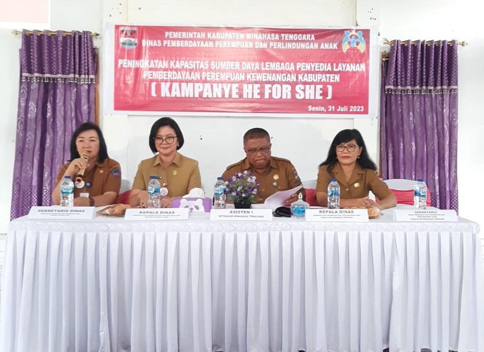 MITRA, MANADOLIVE.CO.ID – Pemerintah Kabupaten Minahasa Tenggara (Mitra) mengadakan kampanye ‘He For She’ dalam rangka Peningkatan Kapasitas Sumber Daya Lembaga Penyedia Layanan Pemberdayaan Perempuan Kewenangan Kabupaten, bertempat di gedung serba guna Kelurahan Wawali Pasan, Ratahan, Senin (31/7/2023).