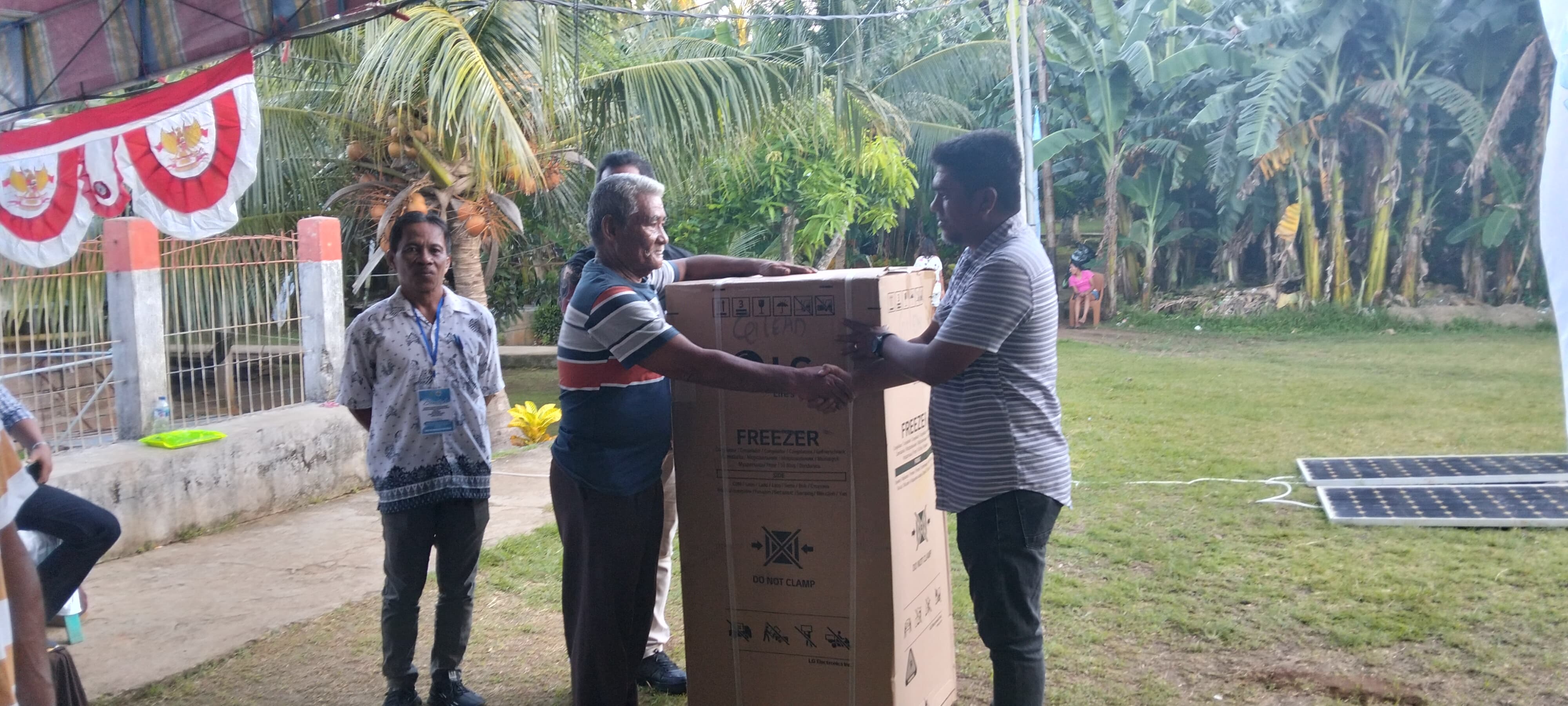 Penyerahan bantuan dilakukan secara simbolis oleh Kepala Dinas Pemberdayaan Masyarakat dan Desa (PMDD) Kabupaten Kepulauan Sangihe, Frans Parawouw, didampingi Kabid Pemerintahan Desa Yesri Muridang dan Kapitalaung Kampung Kawio Batin Mamintade.