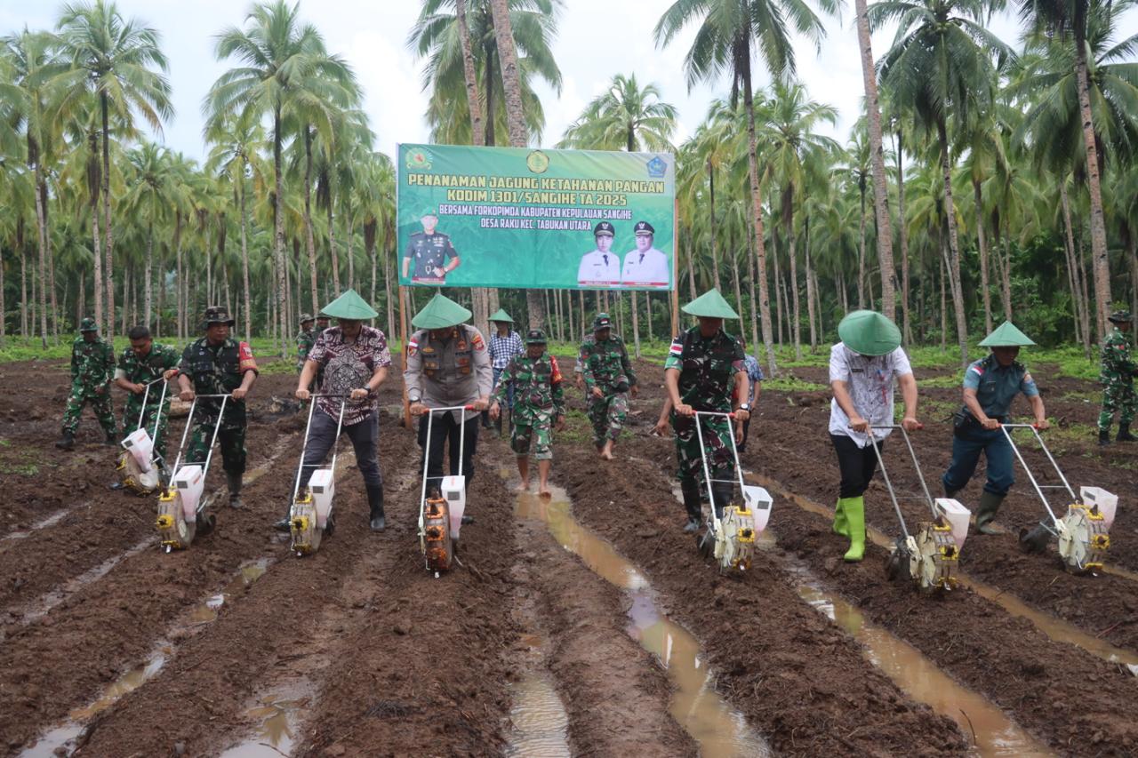Kapolres Kepulauan Sangihe Hadiri Penanaman Jagung Program Ketahanan Pangan Kodim 1301