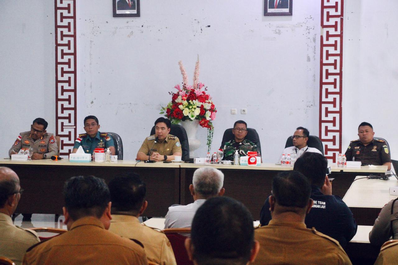 Rapat tersebut dipimpin langsung oleh Bupati Kepulauan Sangihe, Michael Thungari, S.E., M.M., dan dihadiri unsur Forum Koordinasi Pimpinan Daerah (Forkopimda), pimpinan instansi vertikal, jajaran pemerintah daerah, serta panitia pelaksana HUT daerah dan Tulude.