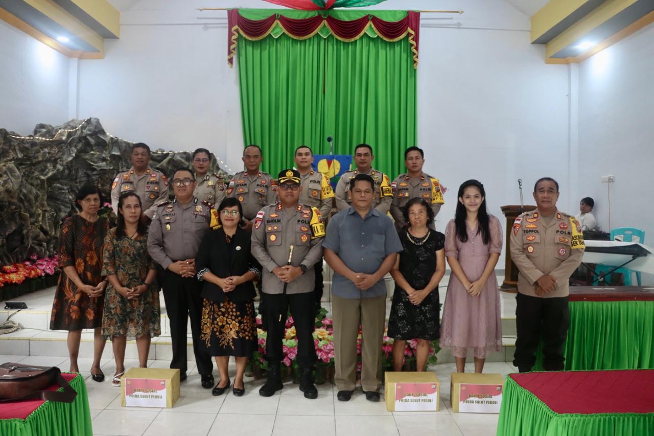 Setelah ibadah, Polres Kepulauan Sangihe juga menyerahkan bantuan berupa sembako secara simbolis kepada jemaat yang membutuhkan. Penyerahan bantuan ini menjadi salah satu bentuk kepedulian Polri terhadap masyarakat.