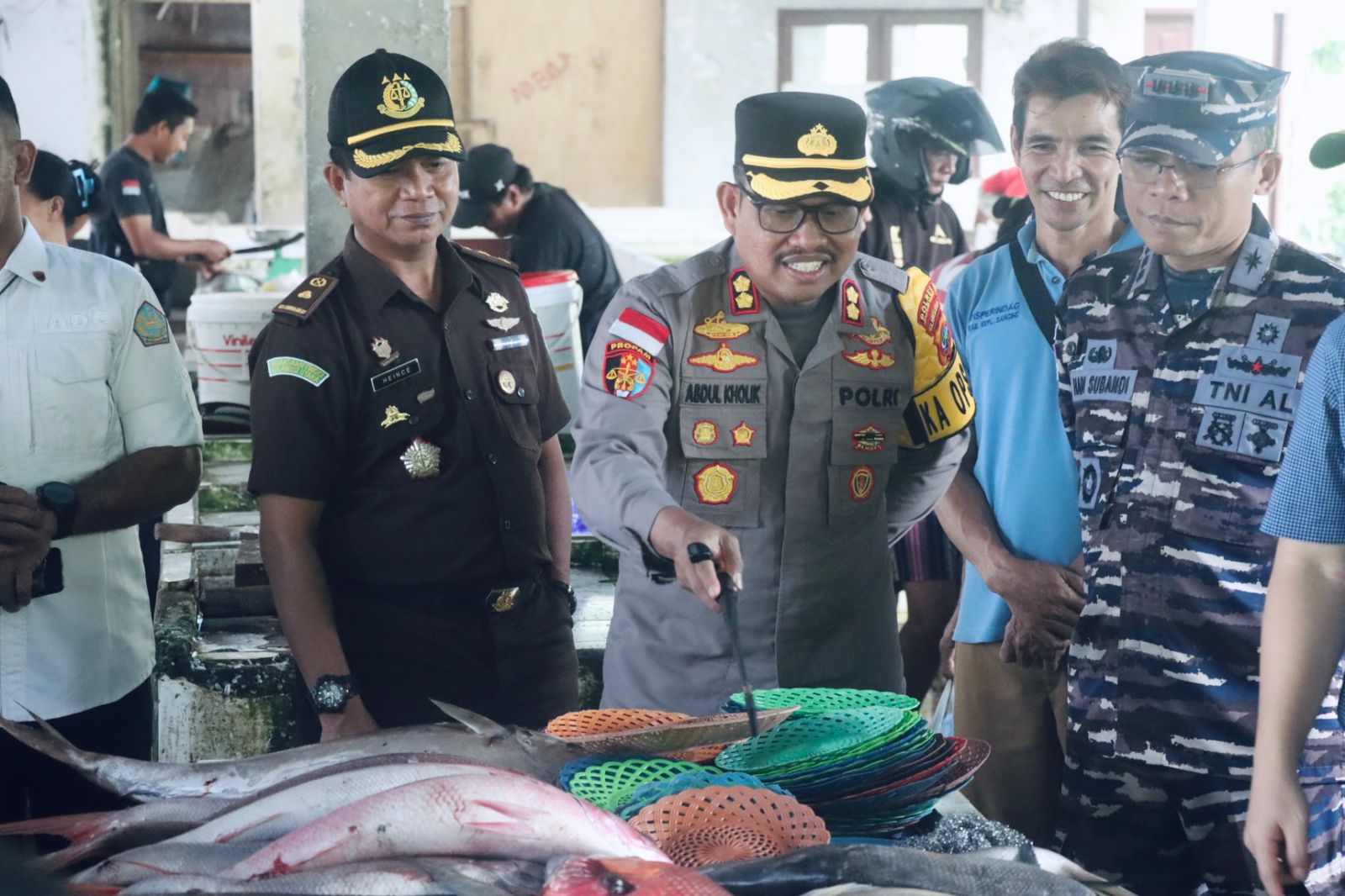 Tahuna Manadolive.co.id — Kapolres Kepulauan Sangihe AKBP Abdul Kholik menghadiri kegiatan operasi pasar menjelang Hari Besar Keagamaan Nasional (HBKN) Idul Fitri 1447 Hijriah yang digelar bersama Forum Koordinasi Pimpinan Daerah (Forkopimda) Kabupaten Kepulauan Sangihe di Pasar Tradisional Petta, Kampung Petta Barat, Kecamatan Tabukan Utara, Selasa (17/3/2026).