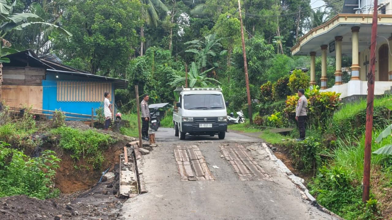 Tahuna Manadolive.co.id – Kapolsek Manganitu IPTU Robert Supit bersama anggota Polsek Manganitu melaksanakan patroli dan kegiatan sambang di ruas jalan raya yang menghubungkan Kampung Pinebentengan dan Kampung Karatung Satu, Selasa (13/01/2026), menyusul kondisi jalan yang mengalami amblas akibat hujan lebat.