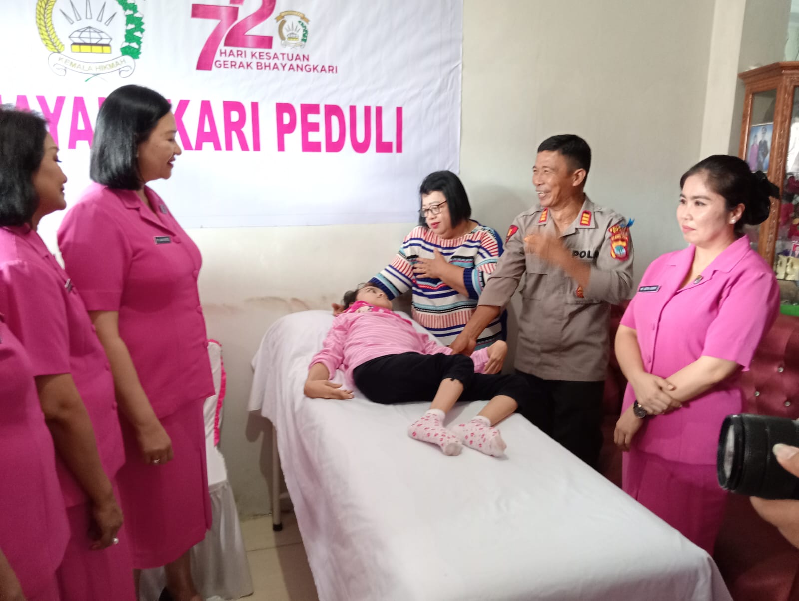 Dr Rusli Ruben menyampaikan terima kasih kepada Ketua Bhayangkari Daerah Sulawesi Utara bersama Ketua Bhayangkari Cabang Bitung yang sudah berkenan datang menjenguk anak Gloria dan menyalurkan bantuan kasih menjadi dorongan semangat bagi kaum keluarga dalam merawat putri tercinta.Guls