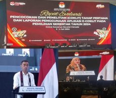 Manado, MANADOLIVE.CO.ID– Plh Ketua Komisi Pemilihan Umum (KPU) Provinsi Sulut Awaludin Umbola membuka Rapat Evaluasi Pencocokan dan Penelitian (Coklit) Tahap Pertama dan Laporan Penggunaan Aplikasi E-Coklit Pada Pemilihan Serentak Tahun 2024, dilaksanakan tanggal 2 – 4 Juli 2024, dan digelar di Grand Kawanua Novotel Manado, pada Selasa (02/07/2024).