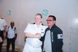 Bitung,MANADOLIVE.CO.ID- Marine Vessel Arcadia kali kedua tiba di pelabuhan Samudera Bitung sekitar pukul 21.00 wita hari Rabu 1 Maret 2023 langsung di sambut oleh Wali Kota Ir.Maurits Mantiri, MM.