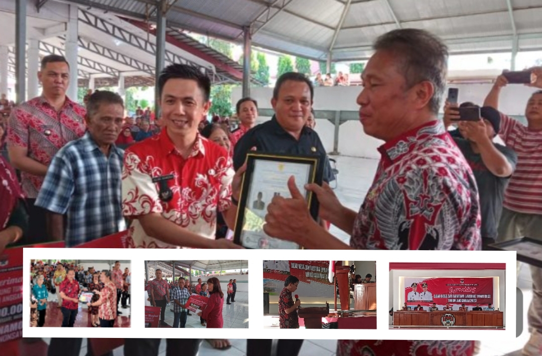 Didampingi Wakil Bupati Pdt. Petra Yani Rembang.M.Th, Bupati Frangky Donny Wongkar SH, mengesahkan Peluncuran dana desa dan BLT untuk masyarakat miskin kabupaten Minahasa Selatan.