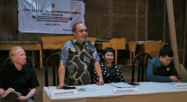 Sosialisasi Ranperda pengelolaan sampah oleh Wakil Ketua DPRD Kota Tomohon, Jeffri Polii Bertempat di di Tuur Maasering, Jumat (16/5/2025).